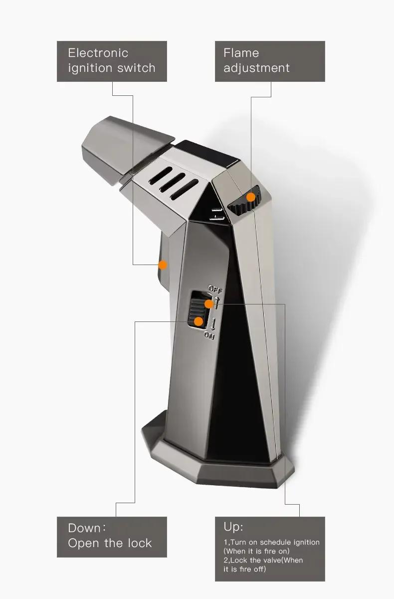 SG001 Butane Gas Refillable Jet Flame Backwood Adjustable Torch Flame Lighter for Kitchen Cigar Outdoor (No Gas)